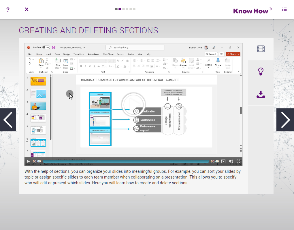Our MS Office E-Learning programs (courses) are aimed at comprehensive learning of an Office application. After launching a course, an intuitive start page is displayed.